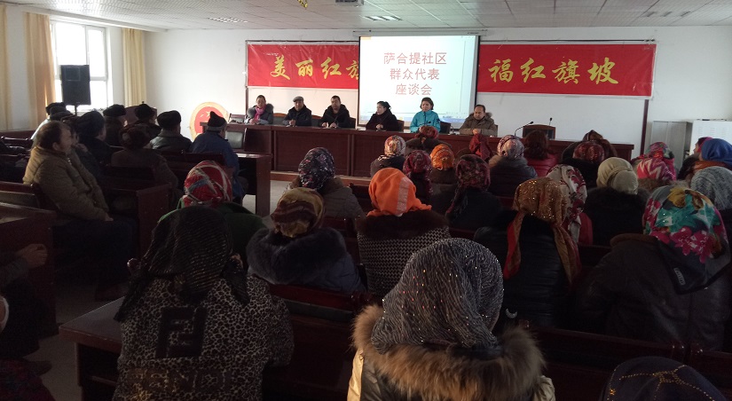 清风网讯:(阿克苏市农业局 史进)2018年3月26日,红旗坡片区萨合提社区活动中心,气氛热烈,阿克苏市农业局驻红旗坡片区萨合提社区工作队与社区40多名社区居民齐聚一堂,敞开心扉谈初心、聊体会、谋发展、畅未来,现场不时传来阵阵掌声。