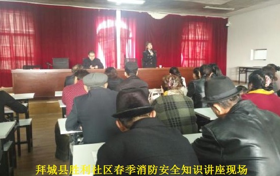 清风网讯:(通讯员 拜城县文体广影局 马名副) 春季气候干燥,是火灾事故的易发期,为切实做好社区消防安全工作,增强居民消防安全知识和应急自救能力,有效预防辖区内火灾事故的发生。3月26日上午,拜城县胜利社区工作队邀请地区消防总队古丽尼沙教官,为辖区居民举办了 一场春季消防安全知识讲座。