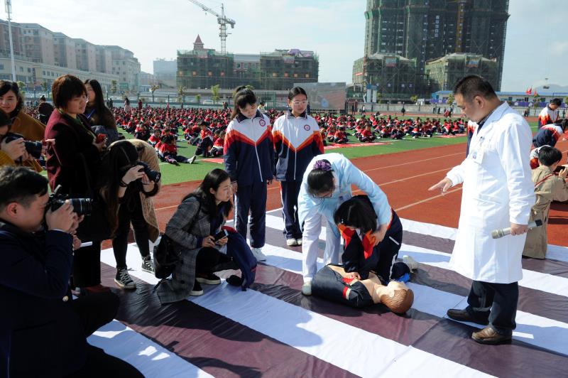 第二现场活动随即拉开帷幕。在庄严的升国旗仪式之后,学生与家长举起右拳,共同宣誓,在国旗和蓝天下承诺要共同构筑安全防线。随后河西学校的师生一齐唱响防溺水主题歌,他们用响亮的歌声,唱出了生命的力度,敲响了安全的警钟。由交警大队协助的实战演习活动成为本次观摩中的亮点:与会领导、师生穿越“火场”,体验浓烟逃生;医务人员示范心肺复苏,学生真实模仿体验;学生家长“小手牵大手”模拟过斑马线,孩子带动家长摒弃交通陋习去,带动身边更多人成为文明交通理念的践行者;小交警表演手语操,丰富交通常识,引导文明出行……丰富而真实的模拟场景让同学们在实践中掌握各种事故的防范知识及应急措施。