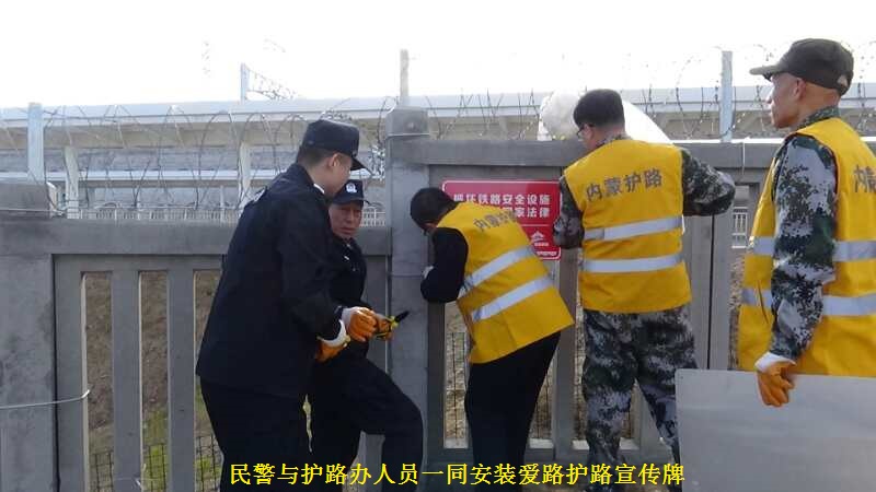 包头铁警深入呼鄂线安装爱路护路宣传牌