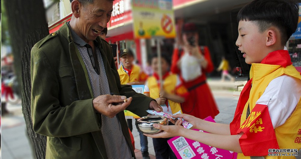 清风网讯:(周志斌 刘恩权) “爷爷,请您把烟熄灭,我还您一个棒棒糖!”几名学生认真地向一位正在抽烟的老人请求。老人马上熄灭烟,有些不好意思地接过孩子递过来的棒棒糖。4月3日下午,宝庆东路人行道上出现一队穿着橙色马甲的小学生,在街上劝导抽烟的路人,这是汽车站街道办、昭陵中学团委、前进小学、双清区青年志愿者协会联合组织的一次创建全国文明城市主题活动中,让人印象深刻的一幕。