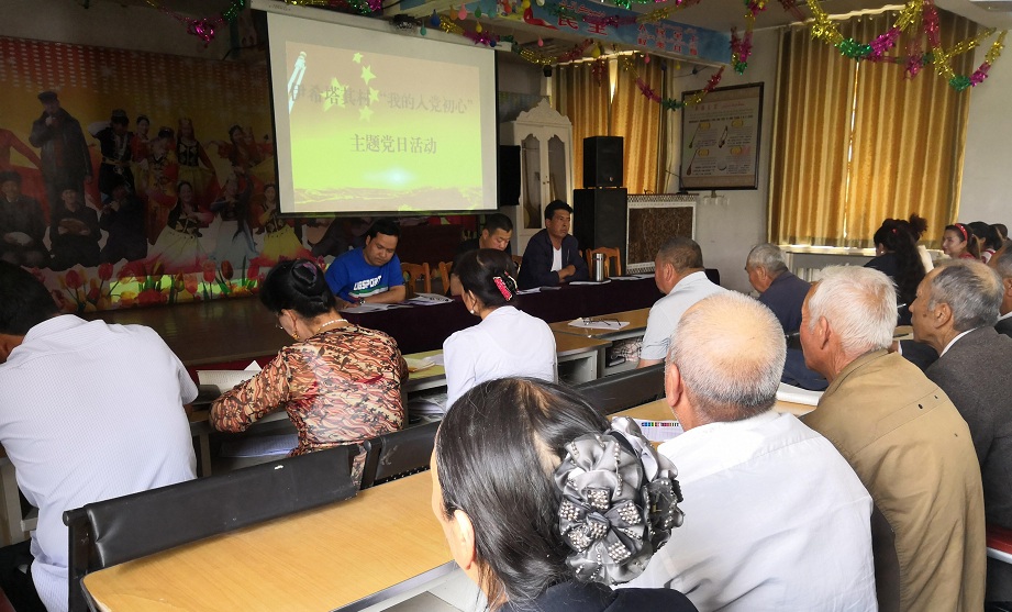 活动中,第一书记、工作队队长张立生首先带领全体党员学习了《新党章》。 随后,村党支部书记依明·买买提尼亚孜与会党员分别畅谈了自己入党的心路历程,大家从回顾初心、牢记初心、践行初心三个方面进行了学习交流。依明·买买提尼亚孜要求全体党员继续深入学习党的十九大精神,进一步增强“四个意识”,在遵守党章党规上做表率,始终保持党的先进性和纯洁性,充分发挥党员的先锋模范作用,把村党支部打造成党在基层的坚强战斗堡垒。