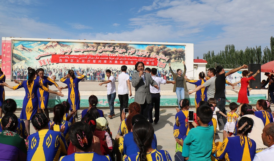 本次慰问演出负责人、自治区文化厅新疆民族乐团歌舞团团长拜合提亚尔·阿布都瓦依提说:“我们在学习贯彻党的十九大精神过程中,践行乡村振兴战略,积极发挥自身优势,深入基层农村开展文化惠民活动,丰富农牧民的文化生活,助力自治区‘访惠聚’工作。我们在慰问演出时,还要鼓励基层农牧民自己唱起来、跳起来,歌颂美好生活,弘扬社会主义核心价值观主旋律和正能量。”