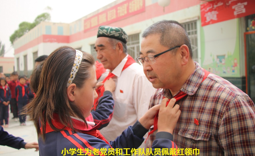 最后,孩子们为老党员、工作队队员系上红领巾,表示一定要好好学习将来报效祖国。通过此番活动,孩子们深刻了解了党和人民的光辉历史,学习了中华民族的灿烂文化和优良传统,感知了社会主义现代化建设取得的伟大成就,极大地增强了孩子们对中华民族的认同感和自豪感,增强了孩子们的爱国情怀。