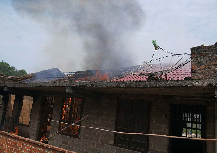 刘西元家在29日上午9点钟左右,因煤气泄漏引起失火,大火刚一燃起即引火上楼直冲屋顶,浓烟滚滚。“火灾就是命令”,刚起火时,有群众打电话向村支书罗自阳告急,罗自阳接到火情电话后,立即拨打镇消防队救援电话,并立即组织村支两委干部,附近的党员组长和老百姓赶往刘西元家积极扑火,镇消防队的消防车立即赶到参与扑火,大火在镇 消防队和村支两委干部群众的奋勇扑救下,于1小时后成功扑灭,最大程度地减轻了刘西元家的火灾损失。但由于刘西元家起火的四间住房属砖木结构,且楼上堆放有柴草,大火还将刘西元老俩口存放于楼上的两口棺材和存于棺材内的10000元现金全部烧毁,而且刘西元家还是建档立卡贫困户,这场火灾对其家造成的损失还是不小的。火灾发生后,花园村党支部、村委会组织党员群众义务清扫垃圾,并积极想办法给刘西元家安置生活住所,以及重建家园。