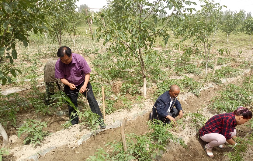 清风网讯:(通讯员 阿克苏地区农业局 张超)近日,阿克苏地区农业局驻沙雅县英买力镇英买力村工作队积极深入田间地头,协助贫困户开展除草、打叉、搭架等田间管理工作。英买力村是地区深度贫困村,历来有种植辣椒的习惯。结合这一实际,驻村工作队在年初通过土地置换等模式,以贫困户户均出资1亩的形式将208户贫困户的208亩土地集中连片,统一种植以辣椒为主体,番茄、大蒜、西甜瓜并重的蔬菜体系。通过与沙雅县粮油购销公司协商,以“订单”式农业的方式解决了销路问题。并充分发挥地区农业局行业优势,由工作队中具有丰富经验的农技专家组成技术指导组,全程参与蔬菜种植各个环节的管理,彻底打消了种植户顾虑,大家的干劲都很足,对今年增收致富充满信心。