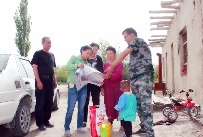 5月29日,沙雅县客运站驻哈德墩镇奥普坎村工作队连同沙雅县客运站书记马桂荣一行5人与看望慰问了村里的3户困难家庭。慰问过程中,与他们亲切交谈、询问了生产生活情况,并送上大米、清油等慰问品,同时还与他们一起读报纸、学习十九大精神。让困难家庭切实感受党和政府的关心关怀与大家庭的温暖。