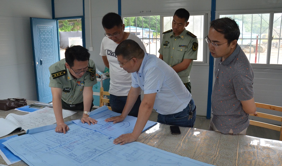 本报网讯:(通讯员 余传海 陈强 童曙明)5月30日上午,湖北英山县人武部部长石俊杰冒雨来到英山县应急救援综合指挥中心工程建设现场检查指导工作,县人防办主任肖本强、县消防大队大队长胡竞成陪同检查。(如图)