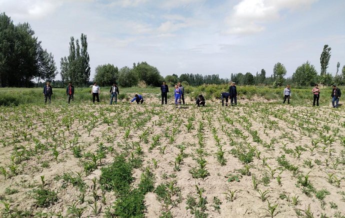贫困户木合买提·买买提说道:“我的儿子现在在拜城县医院做手术,我和妻子一直在医院陪护,家里的7亩玉米地没人间苗。今天我回来拿换洗的衣服,看到大家在我的玉米地里帮我干农活,我很感动,我真的太谢谢他们了。”