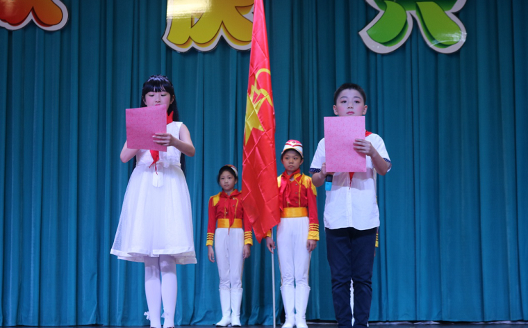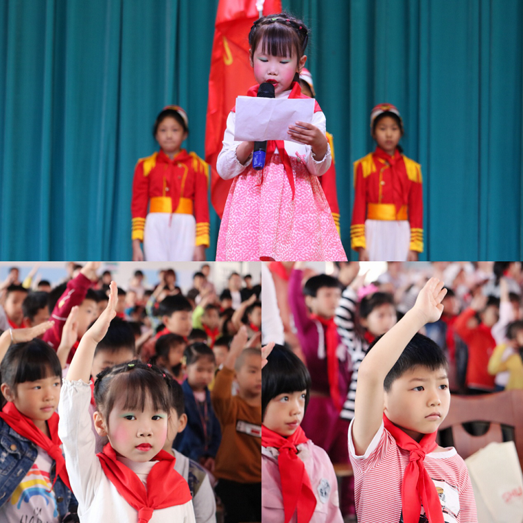 上午九时,入队仪式在庄严的少年先锋队队歌中拉开序幕。政教副校长杨玉红致开幕词, 对新队员们提出了殷切的期望。政教主任尹宝望宣布新队员名单,中队辅导员们为新队员佩戴红领巾。新队员们在大队辅导员李婧的带领下庄严宣誓,他们用稚嫩而又庄严的誓言表达了自己的决心和信心。190班唐璐雅同学代表一年级的新队员发言,仪式在李婧老师带领全体少先队员的呼号声中落下帷幕。