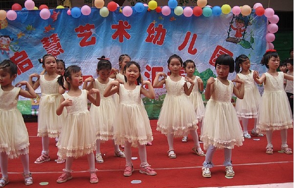 5月31日上午,邵东县牛马司镇启慧艺术幼儿园一片欢歌笑语,小朋友们身穿盛装、载歌载舞共同庆祝“六一儿童节”的到来。活动现场,孩子们欢快的歌声和活波可爱的舞蹈表演赢得了台下家长和观众们阵阵掌声。图为大三班的小朋友在表演舞蹈《微笑的季节》。