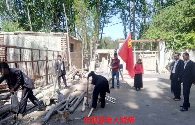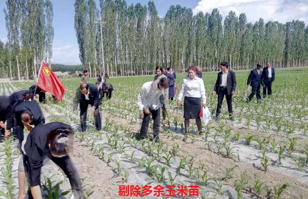 志愿服务队走进4组孤寡老人海力且木·艾买提家中,帮助其劈柴、打扫整理院子,走进田间地头帮助家里缺乏劳动力的农户剔除多余玉米苗,除草等。