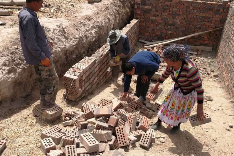 工作队队长库尔班·艾则孜在入户走访时,了解到巴里古家的实际困难,立即组织大家顶着烈日帮助砌筑饲料青贮池。大家分工协作,干劲十足,有的帮忙搬红砖,有的用铁锨清理青贮池里的渣土,有的搬运水泥搅拌混凝土砌筑,看着大家忙碌的身影,巴里古拉着工作队队长库尔班·艾则孜的手激动地说:“真是多亏了有你们,最近村里已经多次催促要尽快完成饲料青贮池的修建,但我家经济困难,我一个人根本没办法完成修建,一直为这个发愁,没想到你们来了这么多人,谢谢、谢谢!冬天,我家的牛羊在也不用愁没有草吃了,你们真是我们的暖心人”。