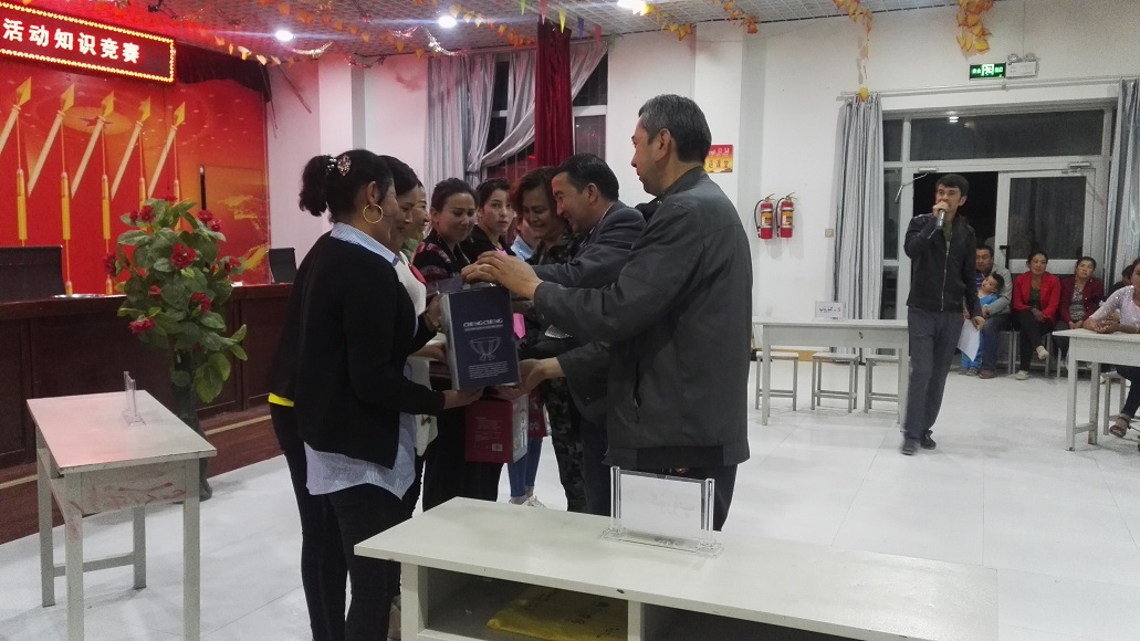 活动最后由工作队队长吐尔洪•吐尔逊和村党支部副书记买买提·阿布都热依木一起为取得优异成绩的代表队颁发了奖品。同时工作队队长吐尔洪•吐尔逊作了总结讲话,在讲话中工作队队长吐尔洪•吐尔逊充分肯定了此次活动中选手们的表现,要求农牧民群众牢固树立“三个离不开”思想,自觉维护民族团结、促进社会稳定,为实现新疆社会稳定和长治久安作出积极贡献。