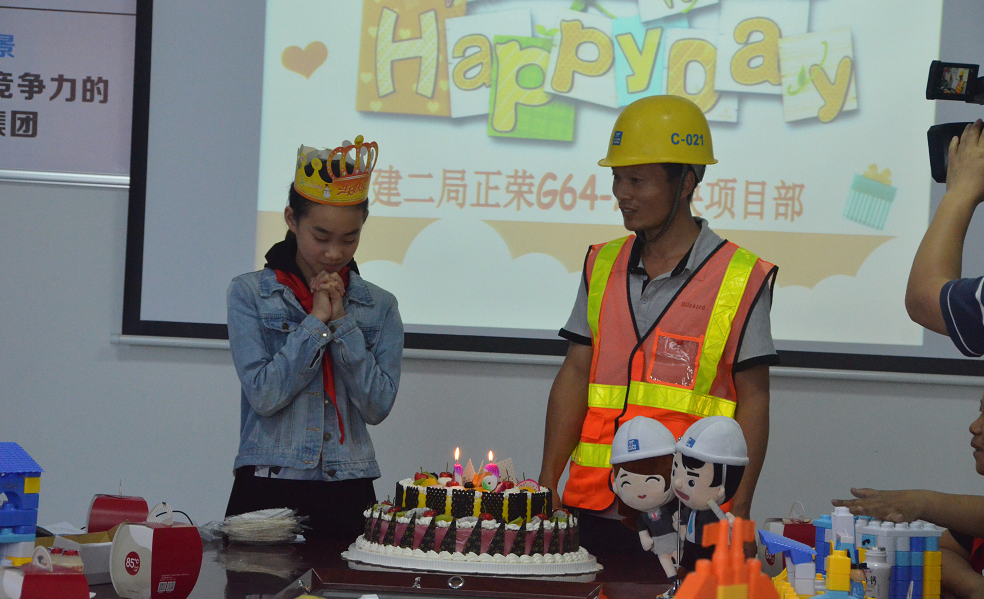 “过完年后就没有见到爸爸了,今天能来到爸爸工作的地方,还可以在建筑工地和这么多小朋友们提前过了我的12周岁生日,很开心!”陈可芯说道。