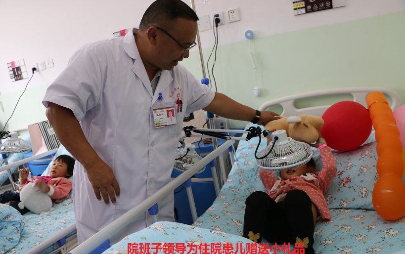 活动中,县中医医院班子领导先后到儿科住院部、妇产科住院部为在院住院患儿送去爱心礼物,一杯杯冒着热气的粥、一个个可爱的毛绒玩具送到小朋友手中,孩子们脸上露出了幸福地笑容。在住院综合楼二楼大厅,很多家长带着孩子远道而来,急切的想了解孩子的病情,听听儿科医师的讲解。儿科专家、治未病科专家为到院的小朋友开展义诊服务,宣讲儿童健康知识并赠送免费小儿推拿一次、参加现场抽奖一次。