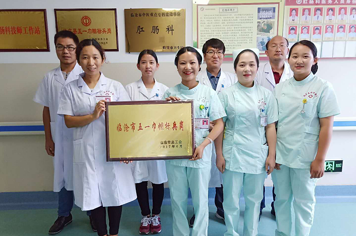 肛肠科在院领导班子的带领下,秉承以“以人为本”的服务理念,始终坚持“精益求精、患者至上”的科训,朝着“队伍专业化、管理制度化、技术标准化、信息网络化、设备现代化”肛肠专科方向努力,紧握传承接力棒,坚持传承和创新并重。在肛肠科全体医护人员的努力下,经过逐级推荐评选,2016年被凤庆县县总工会授予县级“五一巾帼标兵岗”荣誉称号,2017年被临沧市工会授予市级“五一巾帼标兵岗”荣誉称号,于2018年5月在县总工会大会上表彰奖励。