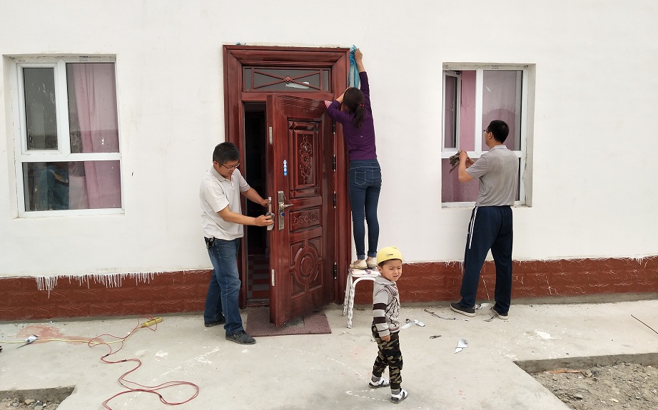 黑英山乡都维勒克村驻村工作队采取多项有力措施,从根本上解决群众脱贫的难题,与都维勒克村“两委”班子上下联动,扎实开展易地扶贫搬迁工作。截止目前,都维勒克村15户易地扶贫搬迁户已全部搬迁到位,喜迁新居。6月2日,地区统计局驻拜城县黑英山乡都维勒克村工作队组织村干部及工作队全体队员,为都维勒克村本村搬迁的5户村民打扫庭院卫生并组织施工队伍修整门前道路及庭院设施,让搬迁的村民喜盈盈的住进了新居。