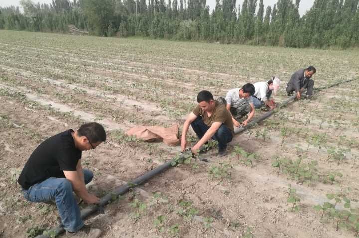 6月3日沙雅县草原管理站驻努尔巴克乡阔什墩村工作队在走访中了解到,辖区村民阿里木·阿西木家棉花地的滴灌带还没有装上,听闻这一消息,阔什墩村第一书记、工作队队长梁延军同志带领队员第一时间来到阿里木·阿西木的棉地里,只见夫妻两人忙前忙后的拉滴灌带。
