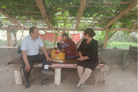 6月4日,阿克提坎村工作队及村干部走访慰问有病重、卧床不起的老人3人,为他们送上营养品,把党的温暖送到他们心坎上。
