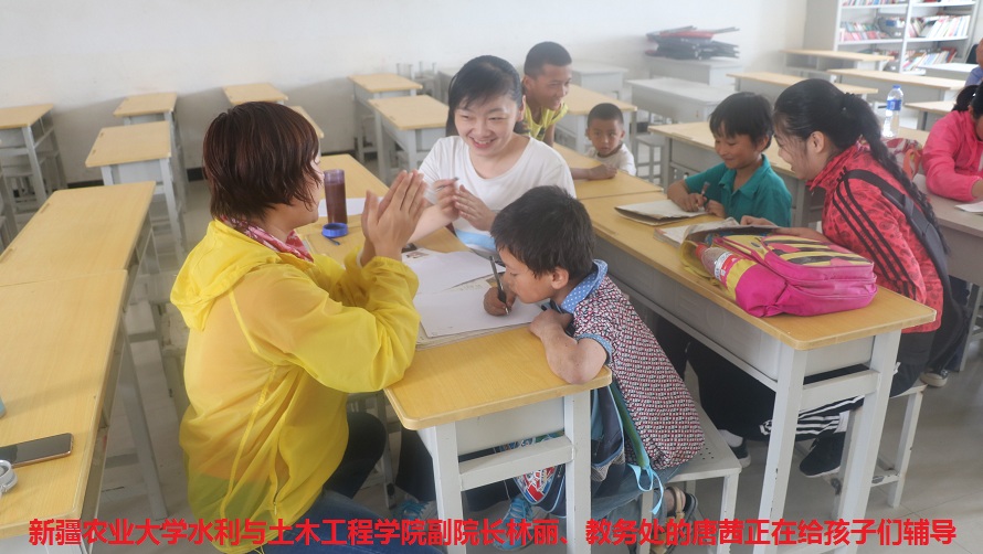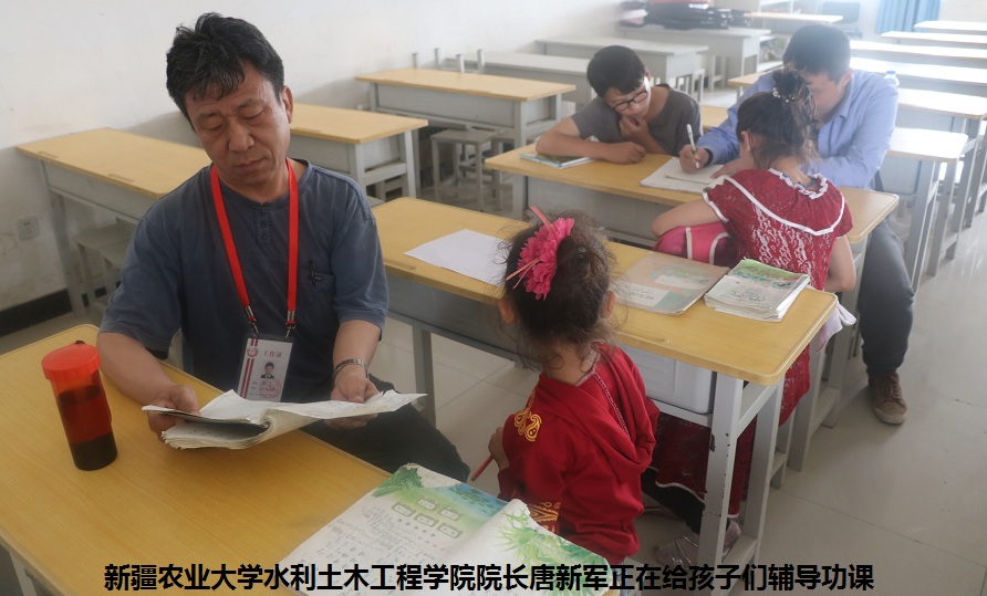 新疆农业大学参加“民族团结一家亲”的老师们到村里,最大的感受就是看到那群活泼可爱、天真无邪的孩子们充满求知的目光,每当来到村民家中,大多数孩子们也会拿着课本向老师请教,每一位老师都会耐心细致的为孩子们讲解,尽自己最大的努力帮孩子们多掌握知识。水利与土木工程学院副院长林丽是去年参加“访惠聚”工作队队员,村里的孩子们见了她,像见了自己的母亲一般都亲切地围过来,问东问西,拿来自己平时不舍得吃的零食,其中在国语小学上五年级的古丽赛娜姆,羞涩地来到林丽老师身边,用一双小手捧着书和笔记本紧张的望着林丽,“林老师,用‘理想’造句,我不知道‘理想’是什么意思?”。林老师俯下身子,半蹲着面带微笑,用手轻轻抚摸着古丽赛娜姆的头说“理想是对未来事物的美好想象和希望的意思,比如说,我的理想是村子建设的更加美好,孩子们都能健康快乐地成长”。小姑娘脱口而出“我的理想是长大能够到新疆农业大学去上大学,和你们一样成为有知识的人”。