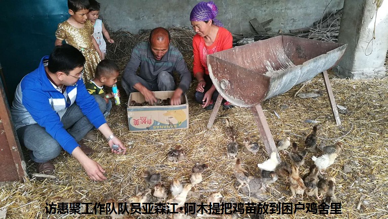 6月4日,拜城县人民法院驻老虎台乡亚木古鲁克村工作队将第一批900只鸡苗,送到9户贫困户手中,鼓励贫困户发展家禽养殖,支持他们发展庭院养殖,帮助他们拓宽致富门路。