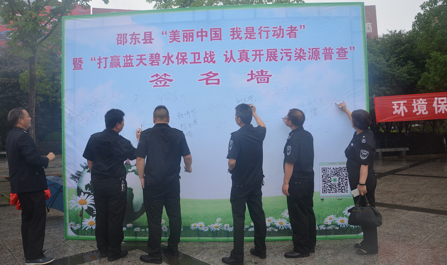 据了解,本次环保宣传活动以“美丽中国,我是行动者”为主题,主要以县城主要街道、广场进行宣传活动。现场市民纷纷在邵东县“美丽中国、我是行动者”暨“打赢蓝天碧水保卫战、认真开展污染源普查”签名墙上认真的签下自己的姓名。宣传活动现场工作人员和志愿者积极发放宣传资料,耐心细致地为群众讲解环境保护常识、环境保护法律制度、环境污染的危害与防治,向群众讲明环境保护的重要性,呼吁社会各界自觉践行绿色生活方式、关注污染防治、参与节能减排,希望大家都能自觉地把环境保护融入到个人的生活和工作的每个细节当中。