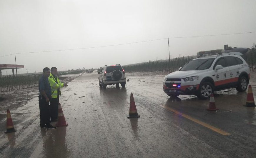 清风网讯:(库车路政管理局 鲁提甫拉·夏米西 阿力木江·伊斯拉伊力) 6月6日18时许,库车西部及北部短时强降水,库车县盐水沟收费站出现大暴雨(累计雨量为75.3mm),属特大暴雨。暴雨引发下游洪水,吐和高速G3012线k625至637路段以及国道G314线k758至k759路段被洪水淹没,库车路政管理局路政巡查人员发现情况后,在局领导的统一指挥下立即启动突发事件应急预案重新调整人员,启动单位的三辆执法车,除留守单位值班人员外,其余所有路政人员分3组赶赴到受灾最严重的各个区域,一组对辖区路段进行灾情查勘,并现场指挥公路抢通工作。二组在辖区路段配合养护部门清理受损路面,并转移受困人员,在洪水爆发时刻安全转移了3名受困乘客。三组在可通行路段协助公安交警对车辆进行管控,封闭路段。