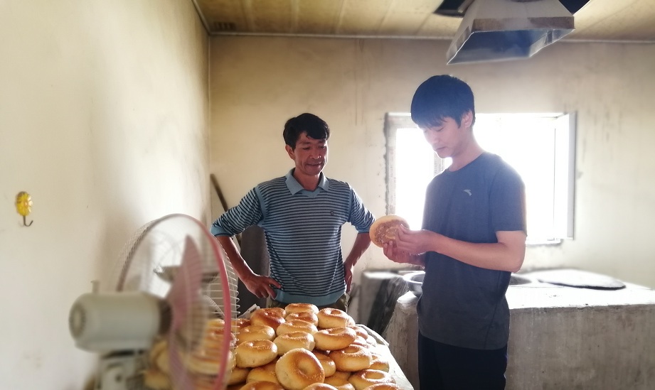 工作队队员王森在知晓了他的困难后,积极的询问他有什么劳动技能。他告诉王森:“由于他的父亲打了一辈子馕,他本人也深受父亲的影响,从父亲那里学到了打馕的技能”。王森听到这里突然问道:“是不是可以把你打馕的技能利用起来呢”?加马力·马木提摇了摇头说道,现在可没有那么多的商铺供自己打馕使用,我看这个想法不行。王森环顾四周,发现他家的院子很大,突发奇想的对他说:你可以在自己家中建一个馕坑呀,就在家里做馕。加马力·马木提听到这个金点子突然拍了一下自己的大腿,高兴的站起来说道。对呀,就在家里打馕。同时王森也继续说道,现在每个巴扎天村民们都要到从巴扎购买大量的馕。如果你在家里打馕,不仅增加了家里的收入,还能极大的帮助群众,让群众在家门口就能买到。