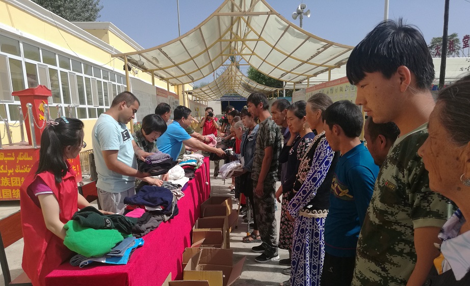 李静书记代表8团党委表示,将一如既往为托万克兰干村献爱心,以实际行动帮助他们,进一步营造互相帮助、互相尊重、平等相待、和睦共处的和谐关系,加深各民族和睦团结,促进社会大局稳定的良好局面。