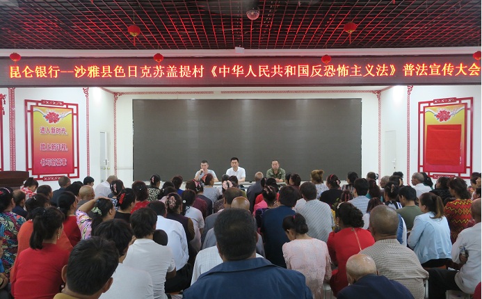 清风网讯:(通讯员 自治区昆仑银行 刘文胜)6月8日,昆仑银行“访惠聚”工作队向沙雅县色日克苏盖提村群众宣传《中华人民共和国反恐怖主义法》和《新疆维吾尔自治区实施〈中华人民共和国反恐怖主义法〉办法》,旨在营造普法、学法、用法的氛围,提高群众的知恐、防恐、反恐意识,维护社会和谐稳定。该村干部群众600多人参加了学习。