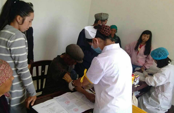 目前已有150余名村民参加体检,分别进行了心电图、B超、验血等体检项目的检查。为了保证本村居民按时参加体检,村两委班子和工作队提前半个月就给村民做动员。利用双语学习、周一升国旗,小组会议等活动提醒参加体检时间和体检注意事项,使这次体检活动得以顺利完成。