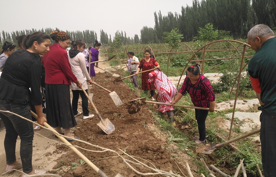 二乌恰社区很多年老体弱、孤寡老人以及缺劳动力的困难家庭种植的地里草没人除、水没人浇,工作队与村两委组织志愿队伍帮助困难群体解决后顾之忧。