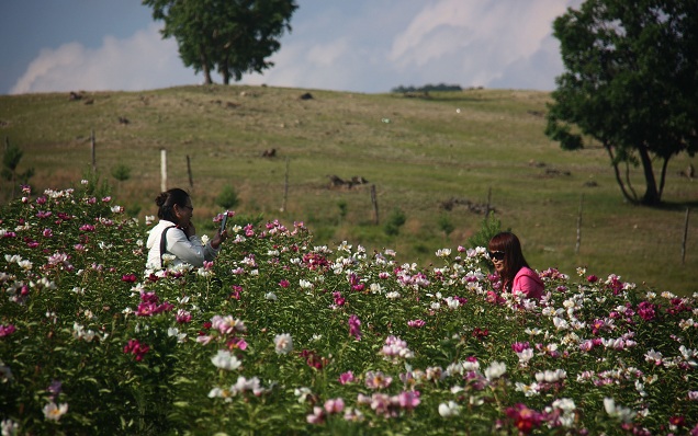 清风网讯:(特约记者 纪明国)大家都知道素有“草原明珠”之美誉的内蒙古呼伦贝尔扎兰屯市的杜鹃花海闻名全国,并在中央电视台播出,引起很大的轰动。但是很少有人知道,扎兰屯市也有一个芍药花海,连日来各种芍药花竞相绽放在扎兰屯市中和镇新林村9组的西山上。清风徐来,花海荡漾,灿烂如云霞,幽香随风飘动,蔚然壮观,吸引游人赏花拍照,不少游人沉醉其间,流连忘返,乐不思蜀。