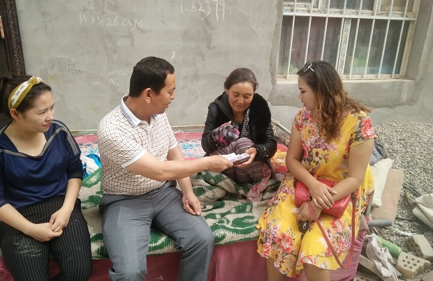 6月12日,工作队成员们带着对祖力皮耶木的关心,将自筹的200元现金送到了她的手中,并嘱咐她好好休息,争取早日康复。
