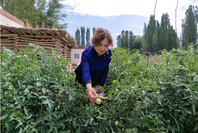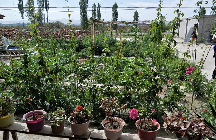 每当闲下来时,米吉提总会和妻子坐在院子里看着满眼的绿色,一起畅谈幸福的人生,美好的未来;而工作队员们入户时也喜欢来到米吉提家里,看看这个,摸摸那个,满怀喜悦的感受着生命的成长,缓解工作带来的压力。这片小小的院子,承载了大家的一个梦,一个充满着绿色和希望的梦!一个充满着对人生美好向往的梦!