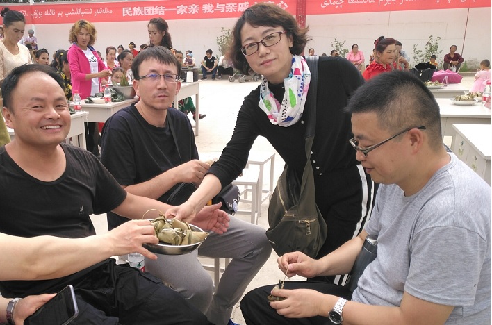 我的亲戚早热木认真学包粽子的专注神情让人感动,她说:“我们要知道过端午节的真正意思,要学习屈原爱国的精神。我也要把吃粽子的含义讲给我的孩子听!”