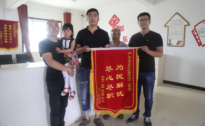 据了解,辖区承包户陈六炳因邻居家的围栏占住了水渠,使得雨水无法及时泄出,对陈六炳家的红枣地造成极大隐患,他们曾多次与邻居沟通,均无结果。经过社区第一书记王俊波和社区书记唐建平多方劝解协调,陈六炳与邻居家各让一步,最终将水渠疏通,陈六炳家再也不用担心雨水泄不出去而影响到红枣地的生长了,为了表示他们内心得感激,特地送来锦旗。