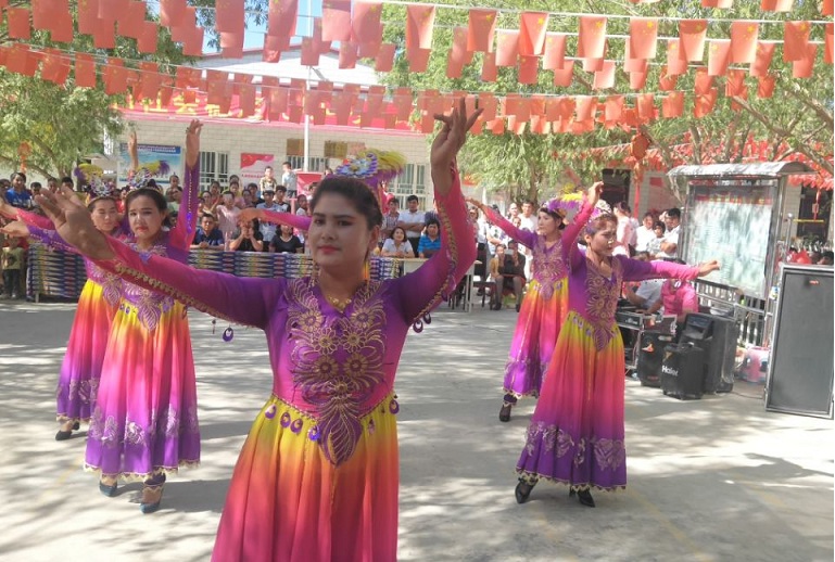 村里有了文艺队,宣传演出多了。不但歌颂我们美好家园和幸福生活,丰富了居民的精神文化生活,给群众单调的生活增添了色彩,带来了快乐,而且把“去极端化”工作做到家喻户晓,打牢各族群众维护社会稳定和长治久安的思想基础,唱响民族团结之歌!