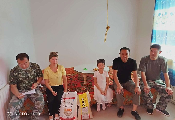 当日上午,村第一书记、工作队队长罗新,带领工作对人员和单位下沉入住干部,对阿依加马力·却尕汗的家庭进行慰问,并带去了大米、面粉、清油等慰问品,并详细了解其家庭生产生活情况,在得知本村村民艾力·塔瓦尔借其人员500元未还时,工作队人员立即打电话通知借款人来到了现场进行解决。了解到借款人暂无现金的情况下,村第一书记、工作队队长罗新,先进行了垫付,限期借款人予以偿还。
