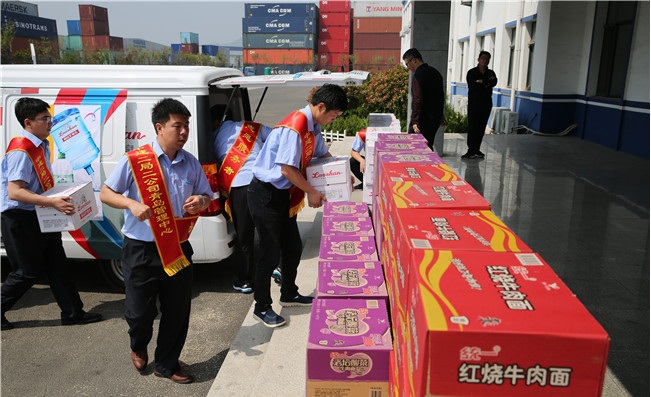 6月5日,青岛管理中心为青岛港公安局前湾分局送去矿泉水泡面等慰问物资共计百箱,向为峰会日夜辛劳的干警送去问候。