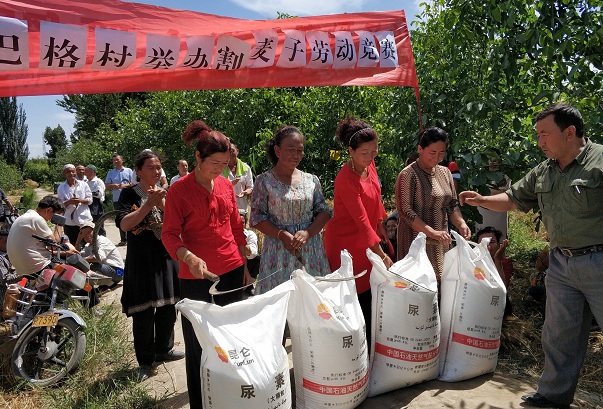 清风网讯(通讯员 沙雅县财政局 刘岩东)6月21日,沙雅县财政局驻沙雅镇其乃巴格村“访惠聚”工作队和村两委、村民一起举办割麦子劳动竞赛,麦子地里传来阵阵加油声、鼓掌声,与割麦子声合奏着一曲愉悦的割麦曲。经过3小时的奋战,顺利割完了8亩多地的麦子,并给割麦子突出者发放农资以资鼓励。