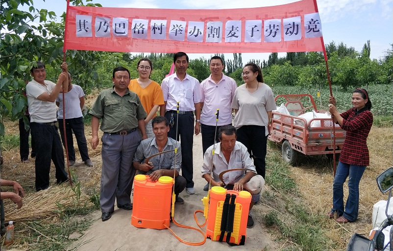 经过3小时的收割劳动,分批次,男女分开竞赛,从60多名村民中选举出了我村的劳动能手,6名村民获得第一名,各发放“小无人机”打药机一台,18名村民获得第二名与第三名,各发放化肥一袋。“今天的割麦子劳动竞赛,我非常高兴,因为我得了第一名,还给我发放奖品鼓励我们,我们要努力劳动,依靠自己的双手发家致富,为全面实现小康社会添砖增瓦,”麦合木提·赛买提说。最后,村民喜悦的把收割完的小麦,装在拖拉机里,满载而归。