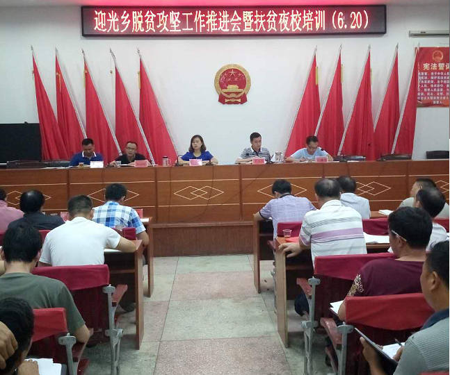 清风网讯:(通讯员 新邵县迎光乡综合办 江涛)6月20日,迎光乡召开脱贫攻坚工作推进会暨扶贫夜校培训,全体乡、村干部,各部门负责人,各驻村帮扶工作队参加会议。