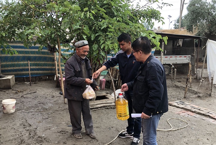 6月16日,在70岁的村民托合塔西汗·努尔家里,第一书记吴浩与村党支部书记阿布都外力·库尔班跟老人唠起党和政府诸多的惠民政策。当问及老人家庭情况时,托合塔西汗·努尔很是满足地说道:“逢年过节干部都来慰问、看望我,党和政府的关心和关爱让我感觉很温暖,我祝福祖国更加繁荣昌盛。”当日兰干村联合党支部共走访慰问孤寡老人、四老人员等共27户,及时送去了节日祝福与清油、茶叶、冰糖等慰问品。