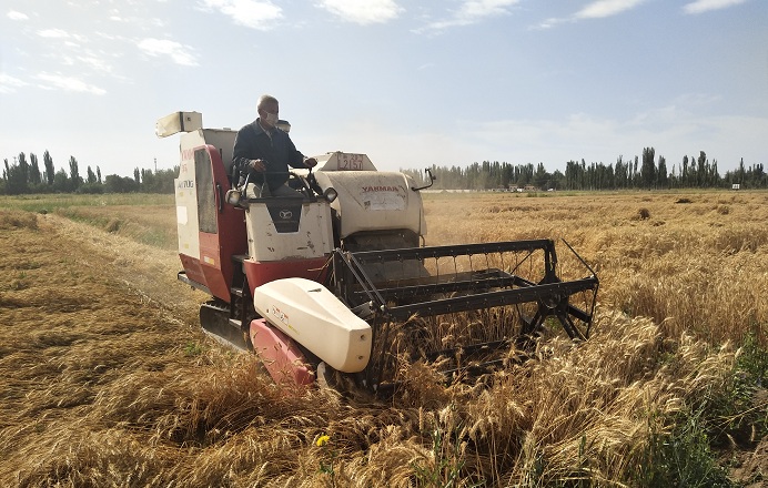 6月20日,铁热克博斯坦村工作队和村两委班子便早早来到了田间地头,帮助村民抢收小麦。据了解,铁热克博斯坦村今年种植小麦1100亩,按照收割机收割效率,预计一个星期左右将全部完成收割任务。