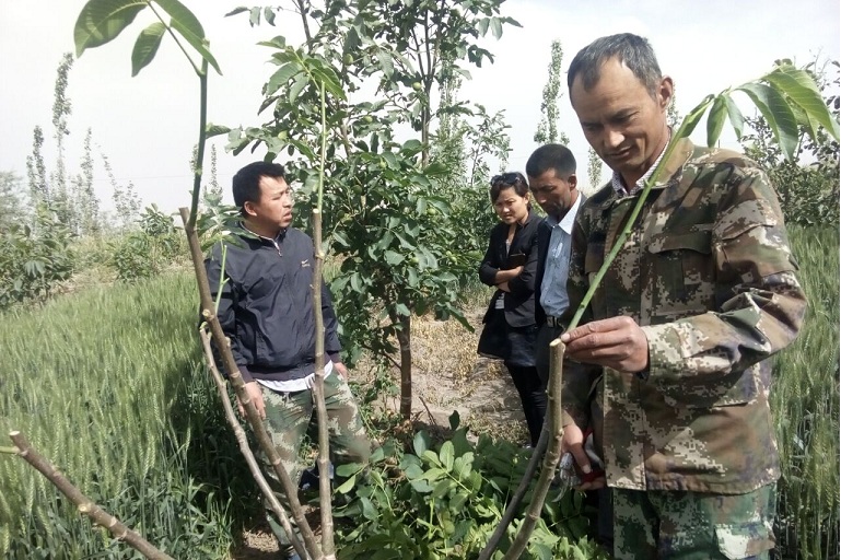 庆塔买里村是一个以种植核桃为主的林果村,有近7000亩核桃园占全村耕地面积的90%以上,有大面积二十年以上的核桃树种植史。目前该村核桃管理现状就是汉族户种植核桃树时间较长核桃树管理技术比较成熟,少数民族种植户由于受传统种植技术的影响近几年才开始种植核桃,相对来说技术方面有所欠缺。针对这一问题,温宿县疾控中心驻庆塔买里村工作队队长田玉保带领村“两委”班子、及时调整发展思路、积极引导村民在科技副主任彭建康的带领下,抓住五月、六月、七月核桃树管理的关键时期、深入到核桃树管理技术相对差的种植户的田间地头,现场指导和手把手的教他们如何嫁接、如何施肥、如何打顶、如何查看核桃树长势情况等一些核桃管理的技术问题进行现场传授示范,深受民族同志的欢迎。通过现场讲解和手把手教技术,把以前个别果农对核桃树管理存在不科学的管理方面全部纠正过来,让他们用先进的科学技术管理果园。