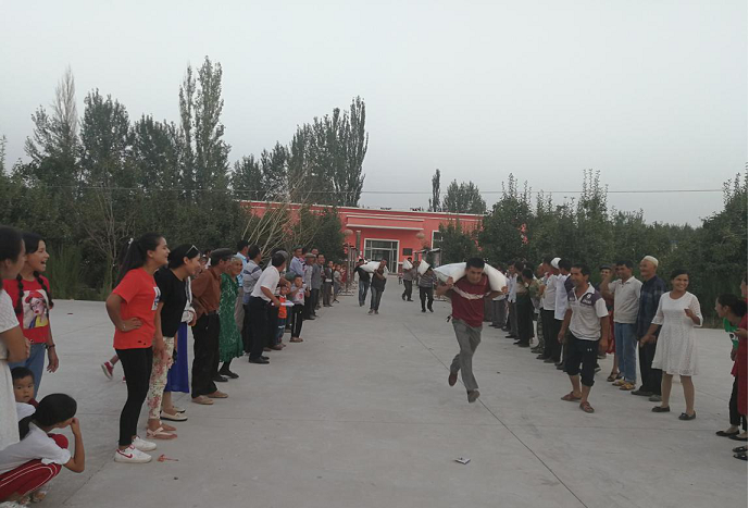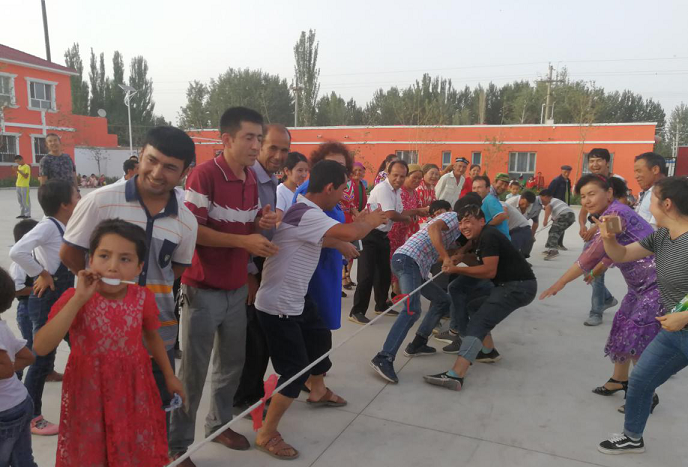孩子们的胜利让大人们也跃跃欲试,于是村民运动会也轰轰烈烈地开始了,拔河比赛、负重赛跑,选手们全力以赴,观众们热情加油,刹那间硝尔买里村委会成了欢乐的海洋,助威声,笑闹声响成一片。夜幕降临了,欢快的麦西来甫音乐响起,大人、孩子们开心地跳了起来,村民们夏收秋播的辛苦、孩子们一个学期的思乡之苦,在这欢快的音乐中瞬间无影无踪,有的只有浓浓的故乡情,一张张笑脸洋溢着满满的幸福…