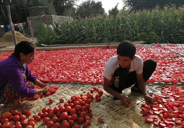 库如勒库木村晾晒西红柿