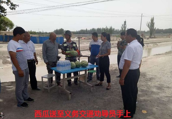 “感谢你们为了道路的畅通,顶烈日,战酷暑,因为你们的辛勤工作,才有了道路交通秩序的和谐、畅通”。该村第一书记阿娜尔古力·吐尔迪在感慨地说道。